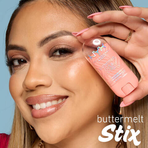 Meet the Buttermelt Family, including Buttermelt Bronzer, Buttermelt Blush, Buttermelt Highlighter, Buttermelt Glaze Skin Tint, and the newest member, Buttermelt Stix.